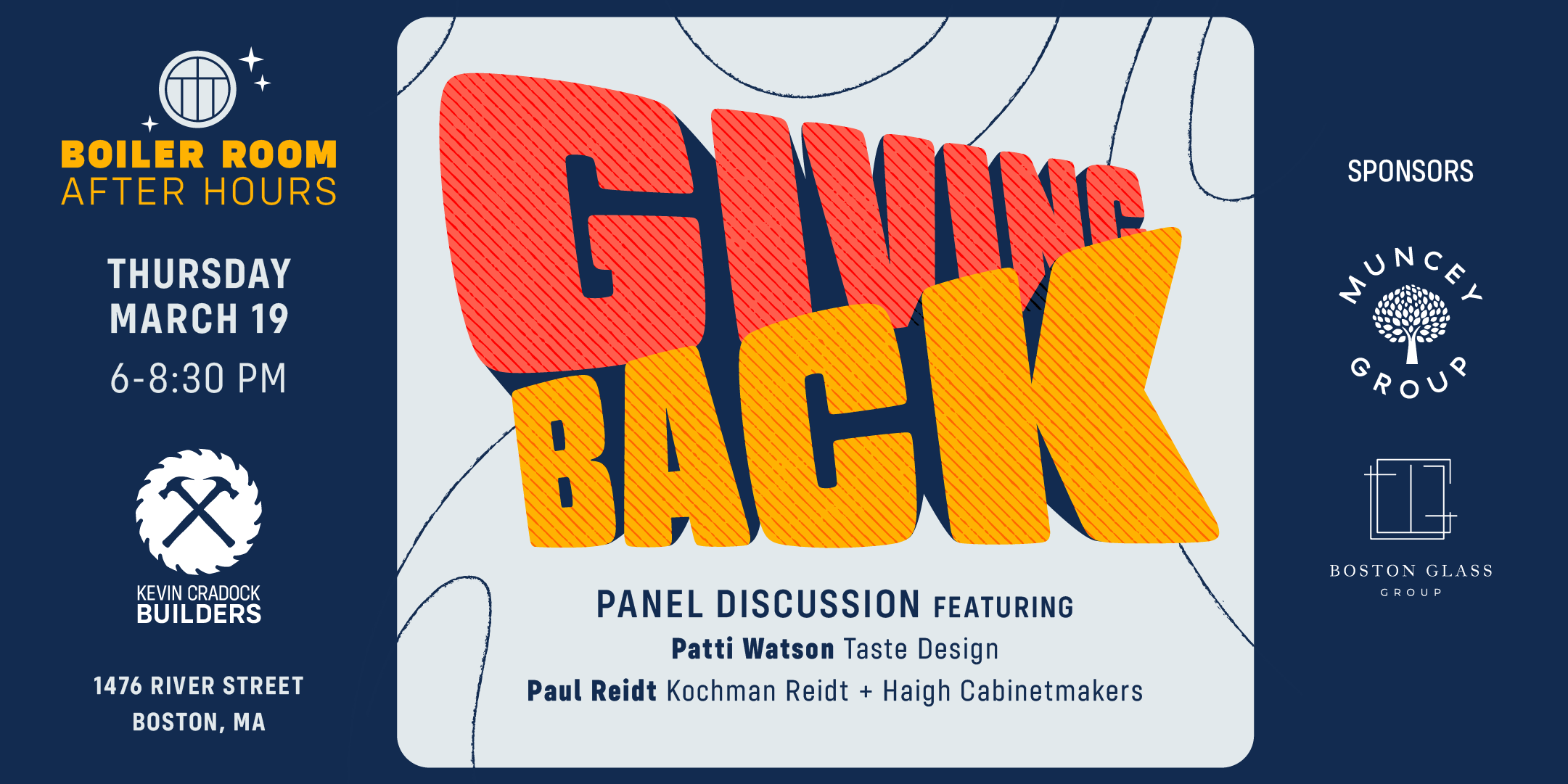 Kevin Cradock Builders kicks off the 2026 Boiler Room After Hours series with a panel discussion about Giving Back. This conversation will be facilitated by Kevin Cradock and will feature guests Patti Watson, Owner and Principal of Taste Design, and Paul Reidt, President of Kochman Reidt + Haigh Cabinetmakers.