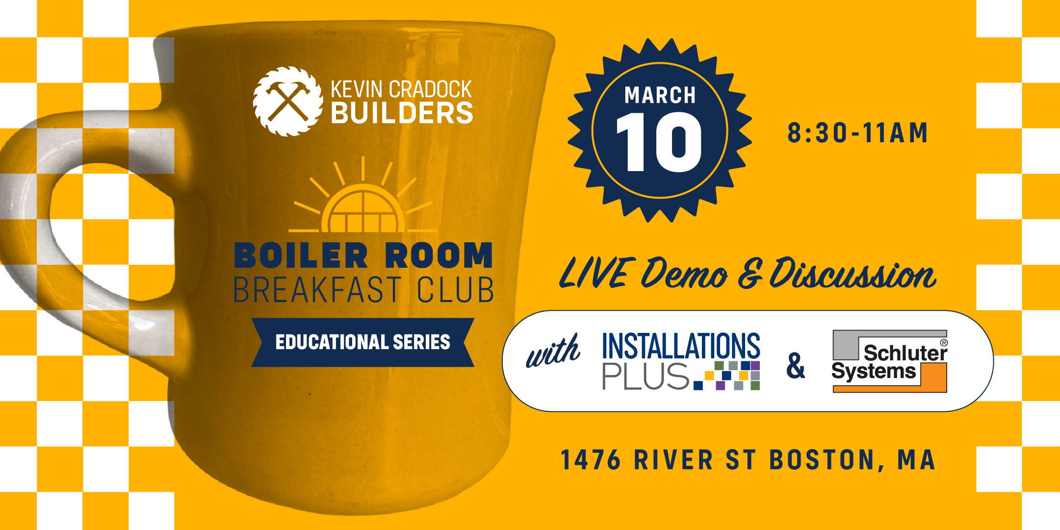 Please join us in the Boiler Room for a presentation and product demonstration featuring Installations Plus and Schluter Systems.
