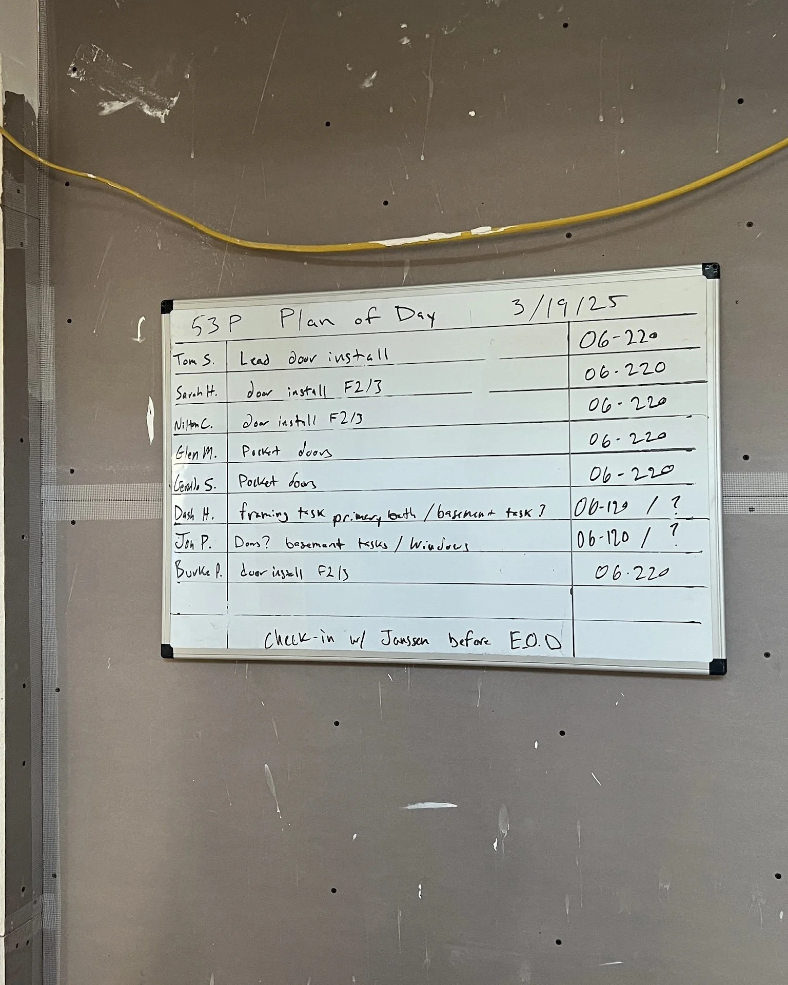 This is our second episode of a new series where we do a deep dive in things that are Hard to Make. Before Kevin started KCB, he served in the Coast Guard, and one of his takeaways was the POD or “Plan of the Day.” The idea is that you have three “big” things you want to tackle during the day. Years later this has been implemented this on our job sites, along with our project managers’ own versions. Ops man Nate McBride and I take some time to talk about what this looks like in real time, scaled up to job sites, across the company.